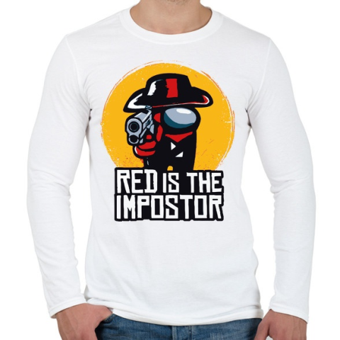 1 kép PRINTFASHION Among us Red is the impostor - Férfi hosszú ujjú póló - Fehér