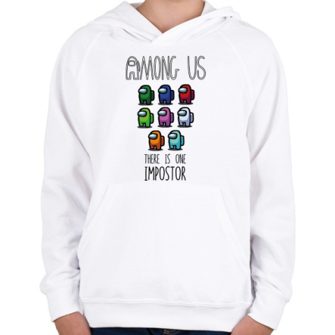1 kép PRINTFASHION Among us there is one impostor - Gyerek kapucnis pulóver - Fehér