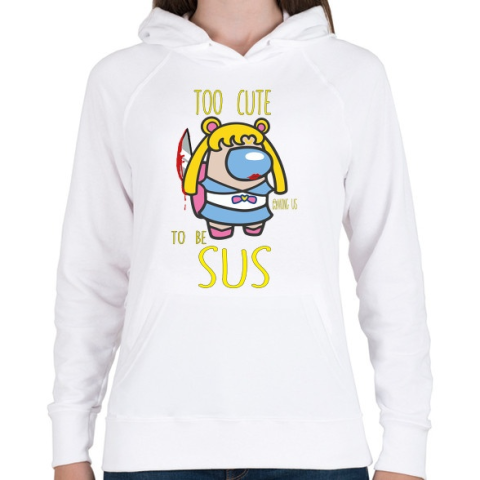 1 kép PRINTFASHION Among us Too Cute To Be SUS - Női kapucnis pulóver - Fehér
