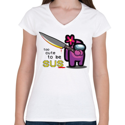 1 kép PRINTFASHION Among us - too CUTE to be SUS - Női V-nyakú póló - Fehér