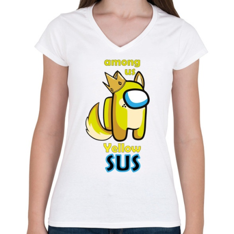 1 kép PRINTFASHION Among us Yellow sus - Női V-nyakú póló - Fehér