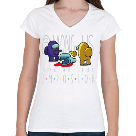1 kép PRINTFASHION Among us - you are the impostor - Női V-nyakú póló - Fehér