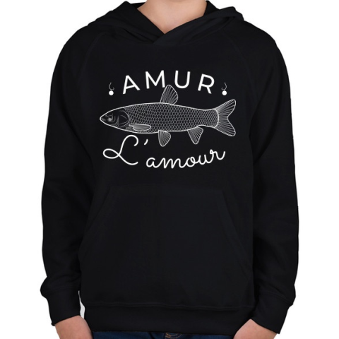 1 kép PRINTFASHION Amur Lamour White-02 - Gyerek kapucnis pulóver - Fekete