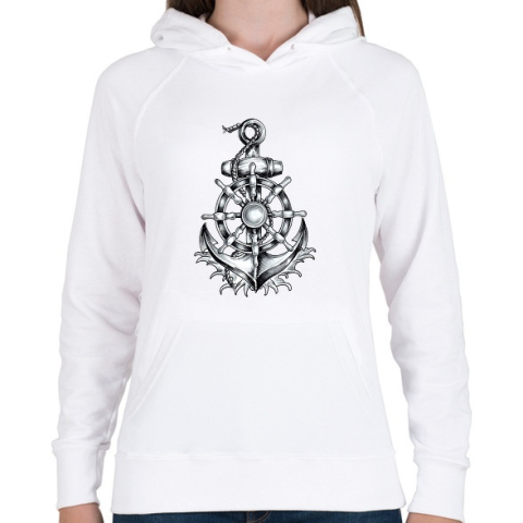 1 kép PRINTFASHION Anchor Drawing - Női kapucnis pulóver - Fehér