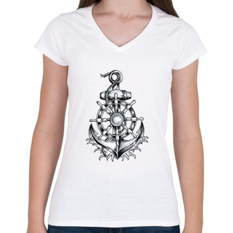 1 kép PRINTFASHION Anchor Drawing - Női V-nyakú póló - Fehér
