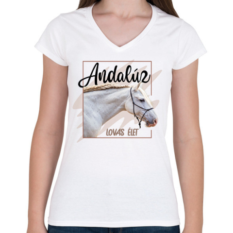1 kép PRINTFASHION Andalúz - Női V-nyakú póló - Fehér
