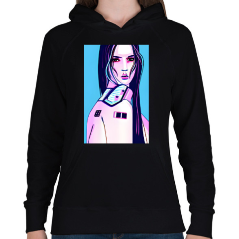 1 kép PRINTFASHION Android-ember-lány-absztrakt_1 - Női kapucnis pulóver - Fekete