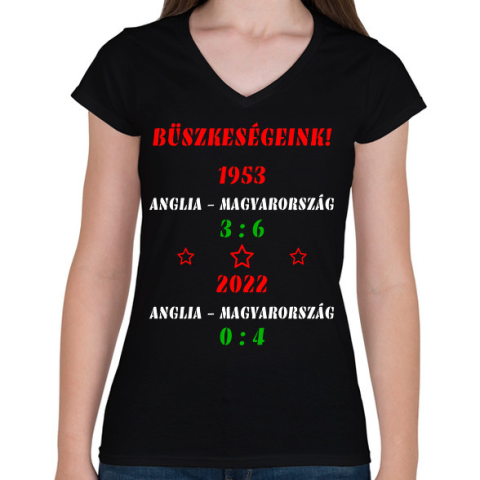 1 kép PRINTFASHION Anglia - Magyarország színes - Női V-nyakú póló - Fekete