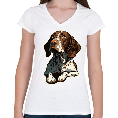 1 kép PRINTFASHION Angol vizsla pointer - Női V-nyakú póló - Fehér