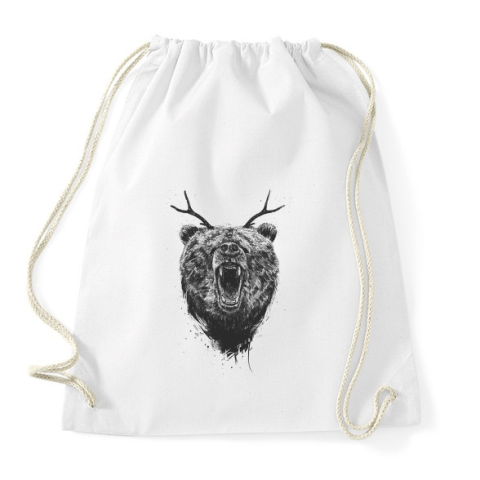 1 kép PRINTFASHION Angry bear with antlers - Sportzsák, Tornazsák - Fehér