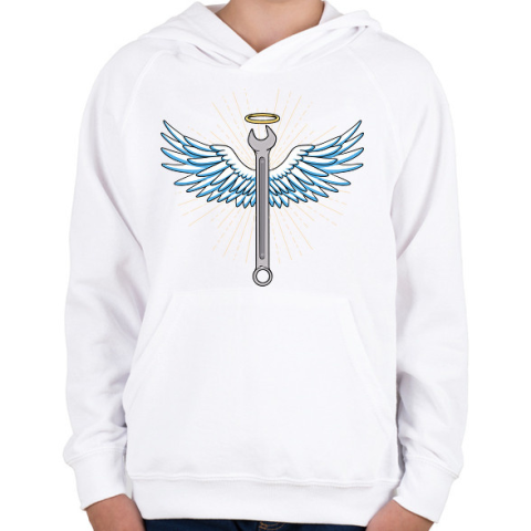 1 kép PRINTFASHION Angyali szerelő - Gyerek kapucnis pulóver - Fehér