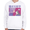 1 kép PRINTFASHION Animés csaj és cica - Gyerek kapucnis pulóver - Fehér
