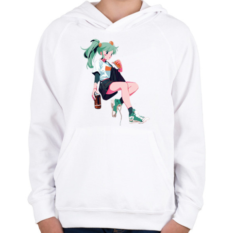 1 kép PRINTFASHION Animés csaj - Gyerek kapucnis pulóver - Fehér