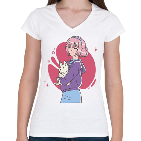 1 kép PRINTFASHION Animés csaj - Női V-nyakú póló - Fehér