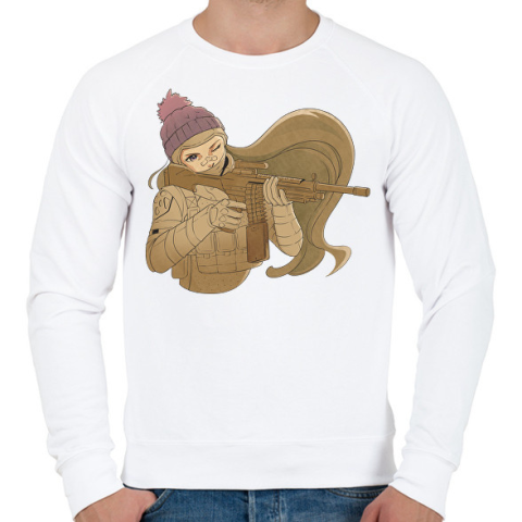 1 kép PRINTFASHION Animés katona - Férfi pulóver - Fehér