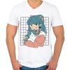 1 kép PRINTFASHION Animés lány cicával - Férfi V-nyakú póló - Fehér