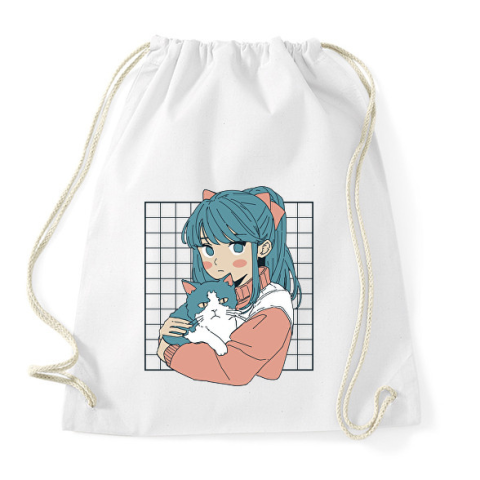 1 kép PRINTFASHION Animés lány cicával - Sportzsák, Tornazsák - Fehér