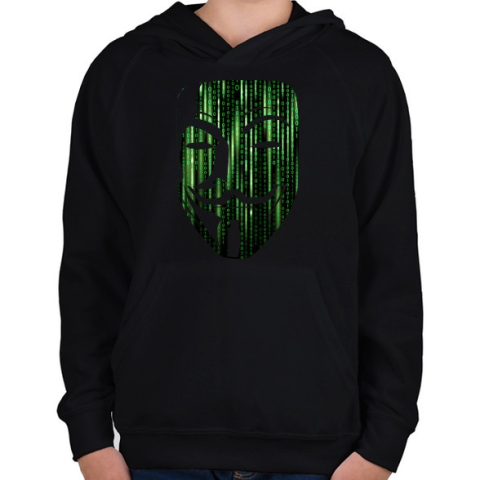 1 kép PRINTFASHION Anonymous bináris kód - Gyerek kapucnis pulóver - Fekete