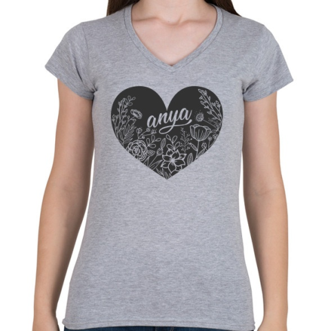1 kép PRINTFASHION Anya felirat szívben virágokkal - Női V-nyakú póló - Sport szürke