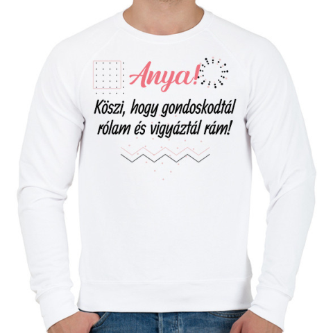 1 kép PRINTFASHION Anya! Köszi hogy gondoskodtál rólam - Férfi pulóver - Fehér