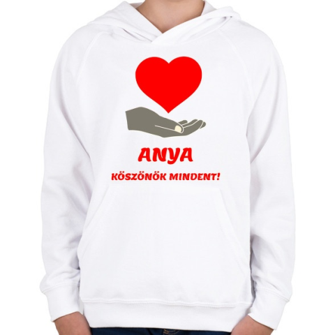1 kép PRINTFASHION Anya köszönök mindent - Gyerek kapucnis pulóver - Fehér