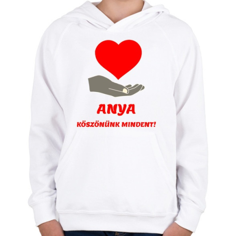 1 kép PRINTFASHION Anya köszönünk mindent - Gyerek kapucnis pulóver - Fehér