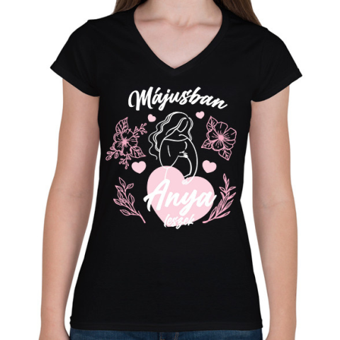 1 kép PRINTFASHION Anya leszek - Hónappal (fehér) - Női V-nyakú póló - Fekete