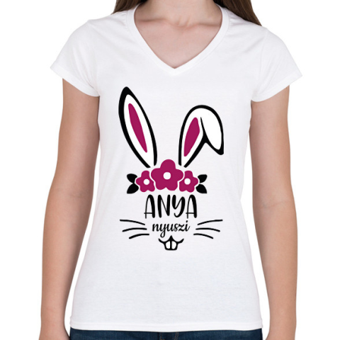 1 kép PRINTFASHION Anya nyuszi - Női V-nyakú póló - Fehér
