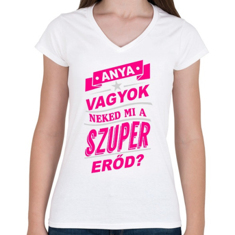 1 kép PRINTFASHION Anya szuperereje - Női V-nyakú póló - Fehér
