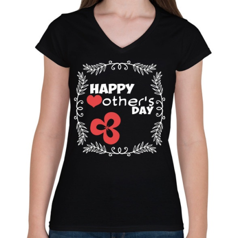 1 kép PRINTFASHION Anyák napja! - Női V-nyakú póló - Fekete