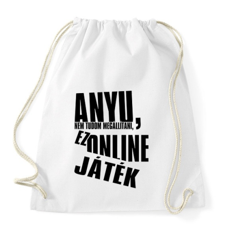 1 kép PRINTFASHION Anyu, nem tudom megállítani, ez online játék - Sportzsák, Tornazsák - Fehér