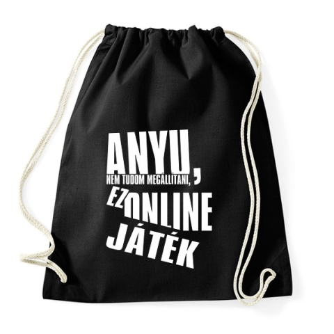 1 kép PRINTFASHION Anyu, nem tudom megállítani, ez online játék - Sportzsák, Tornazsák - Fekete