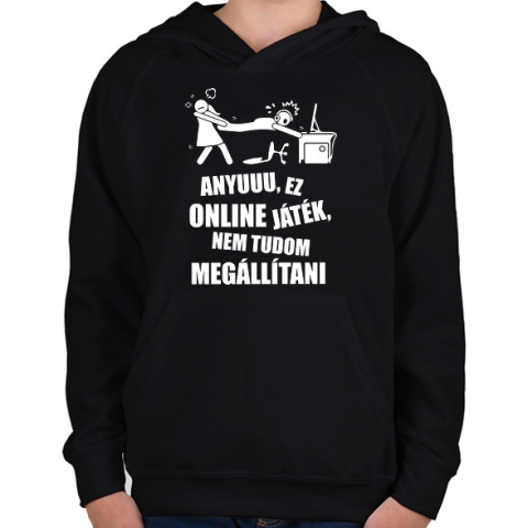 1 kép PRINTFASHION Anyuuu, ez online játék - Gyerek kapucnis pulóver - Fekete