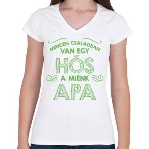 1 kép PRINTFASHION Apa a hős - Női V-nyakú póló - Fehér