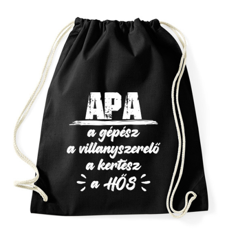1 kép PRINTFASHION Apa - A hős - Sportzsák, Tornazsák - Fekete