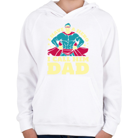 1 kép PRINTFASHION Apa a hősöm - Gyerek kapucnis pulóver - Fehér