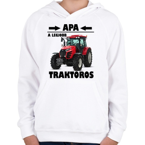 1 kép PRINTFASHION Apa a legjobb traktoros - Gyerek kapucnis pulóver - Fehér