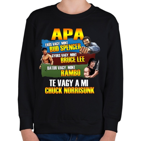 1 kép PRINTFASHION Apa a mi Chuck Norrisunk - Gyerek pulóver - Fekete