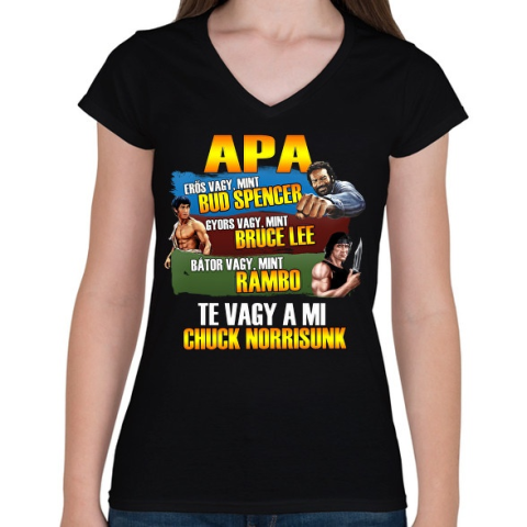1 kép PRINTFASHION Apa a mi Chuck Norrisunk - Női V-nyakú póló - Fekete