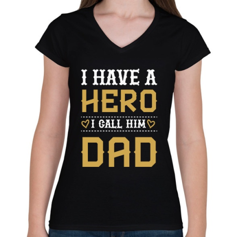 1 kép PRINTFASHION Apa az én hősöm - Női V-nyakú póló - Fekete