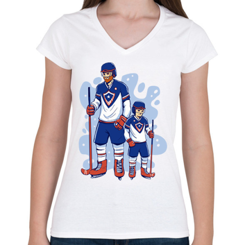 1 kép PRINTFASHION Apa és fia hokis - Női V-nyakú póló - Fehér