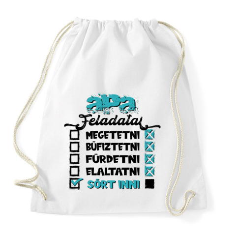 1 kép PRINTFASHION Apa feladatai - fekete szöveggel - Sportzsák, Tornazsák - Fehér