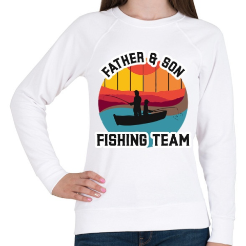 1 kép PRINTFASHION Apa&fia Horgász - Női pulóver - Fehér