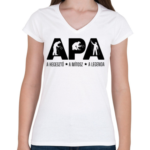 1 kép PRINTFASHION Apa - hegesztő - Női V-nyakú póló - Fehér