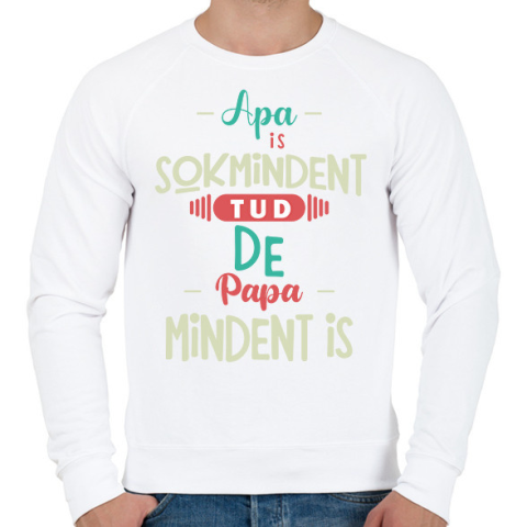 1 kép PRINTFASHION Apa sok mindent tud, de papa mindent is - Férfi pulóver - Fehér