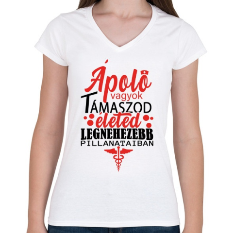 1 kép PRINTFASHION Ápoló vagyok! - Női V-nyakú póló - Fehér
