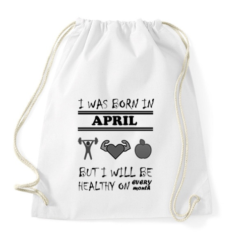 1 kép PRINTFASHION Áprilisban születtem de minden hónapban egészségesen élek - Sportzsák, Tornazsák - Fehér