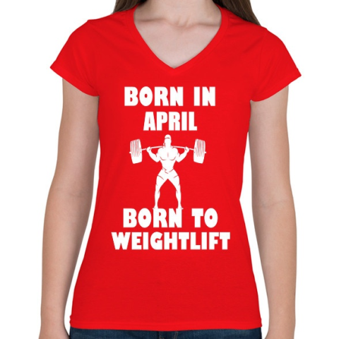1 kép PRINTFASHION Áprilisban születve - súlyemelésre születve - Női V-nyakú póló - Piros