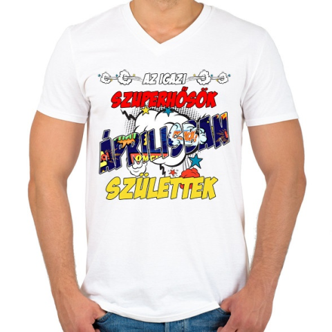1 kép PRINTFASHION Áprilisi szuperhős - Férfi V-nyakú póló - Fehér