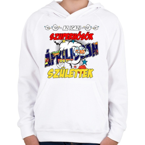 1 kép PRINTFASHION Áprilisi szuperhős - Gyerek kapucnis pulóver - Fehér